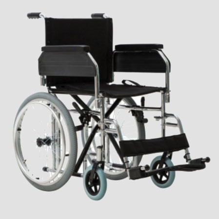 - Carrozzina standard: robusta e affidabile per utilizzi occasionali o permanenti.
